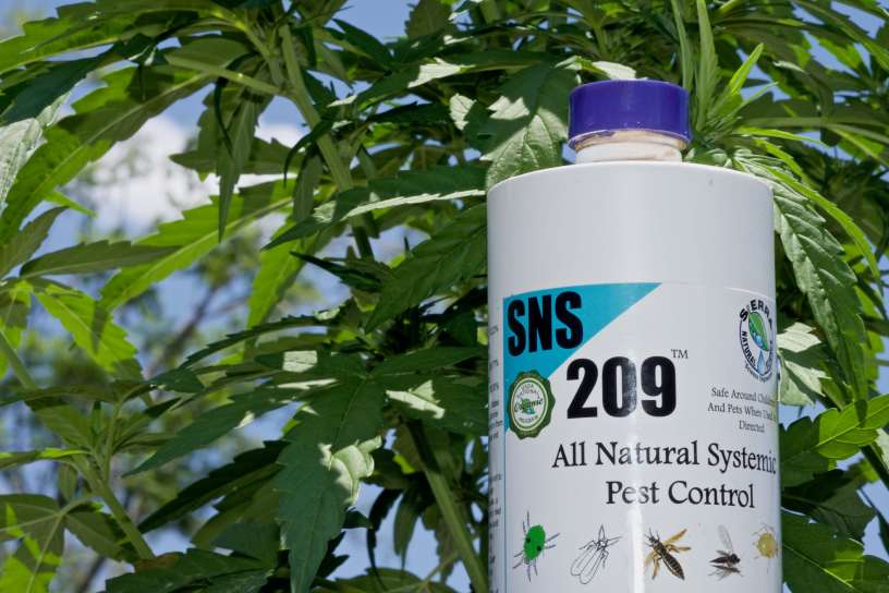 SNS-209 is a systemic pest control formula that enters plants and makes them taste bad so marijuana pests won’t want to eat them. The bad taste comes from rosemeric acid, which doesn’t harm your plants or you. This formula doesn’t kill pests on contact, it just makes plants unappealing to them. You feed it to your cannabis plants from start of growth and continue for 2-3 weeks. Then discontinue use and administer the product again every 2-3 weeks. It can stay in your hydroponics reservoir and works fine with hydroponics nutrients.