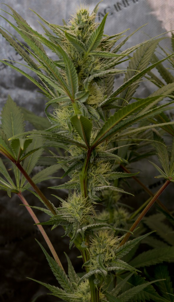 True Afghani plants are short, extremely vigorous, with massive leaves, branches, stalks, deep green in color. In bloom phase, plants develop extremely thick buds, filled-in internodes, and dense resin formation with fat, cloudy and amber resin glands. The classic Afghan “skunk” smell, along with terpenoid scents of pine, sandalwood, and pepper, infuses buds and glands.